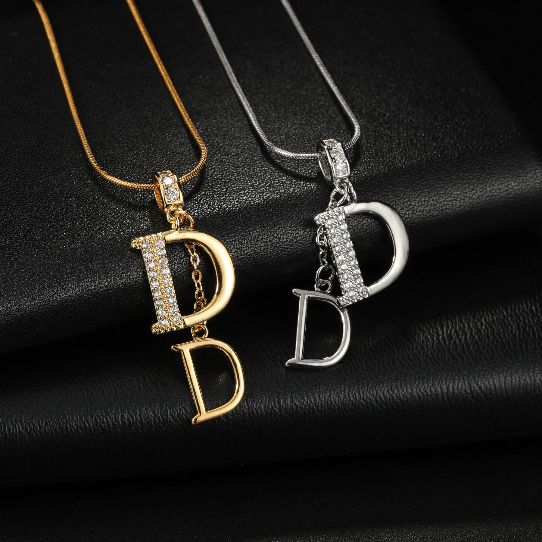 New Design Zircon Double D Letter Pendant Short Necklace Neck Chain Fashion Jewelry For Woman Girls Party Gift